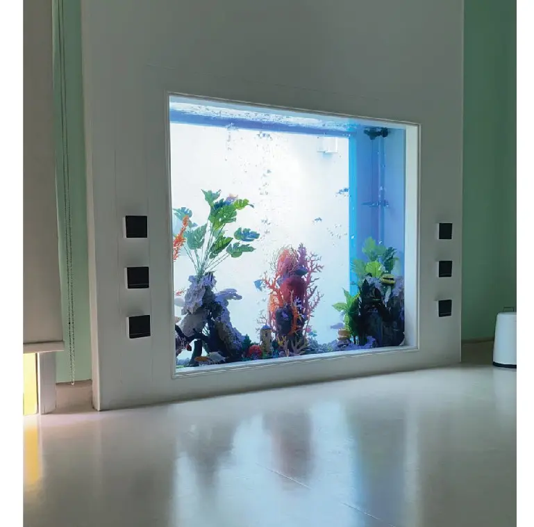 reef fish. A colour controllable LED lighting was installed above the tanks and a